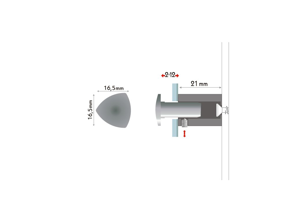 Distanční systém ze slitiny hliníku. Vhodné k upínání skla, akrylátových nebo kovových deskových materiálu z důrazem na vysokou estetiku a design