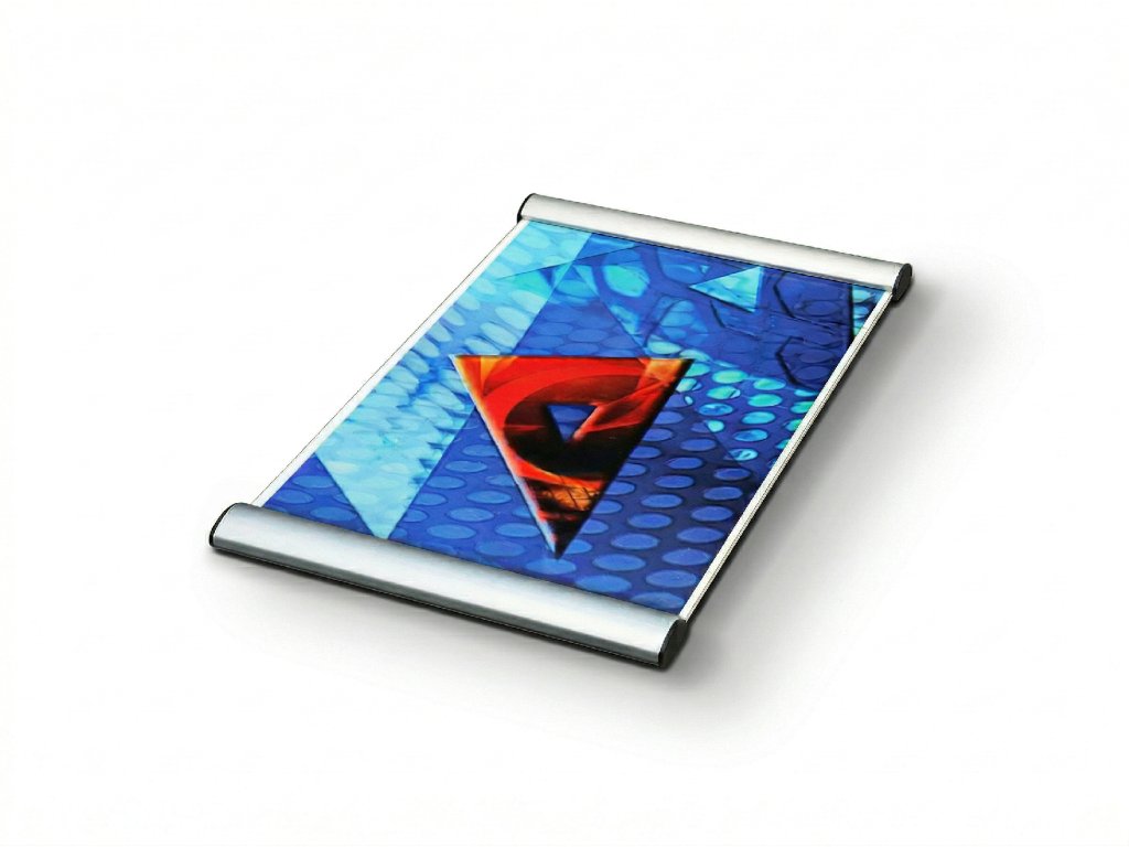 Velmi jednoduchý, ale výkonný hliníkový clip systém pro umístění informace tiskových formátů DIN.